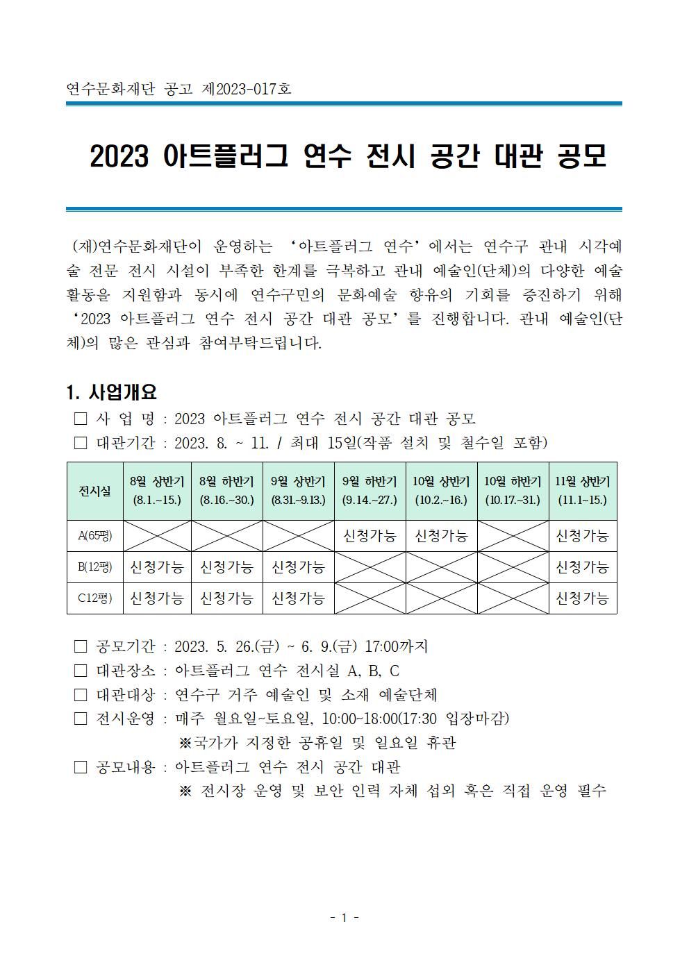 ※공모 관련 문의 : 연수문화재단 예술진흥팀(070-4169-6456)
