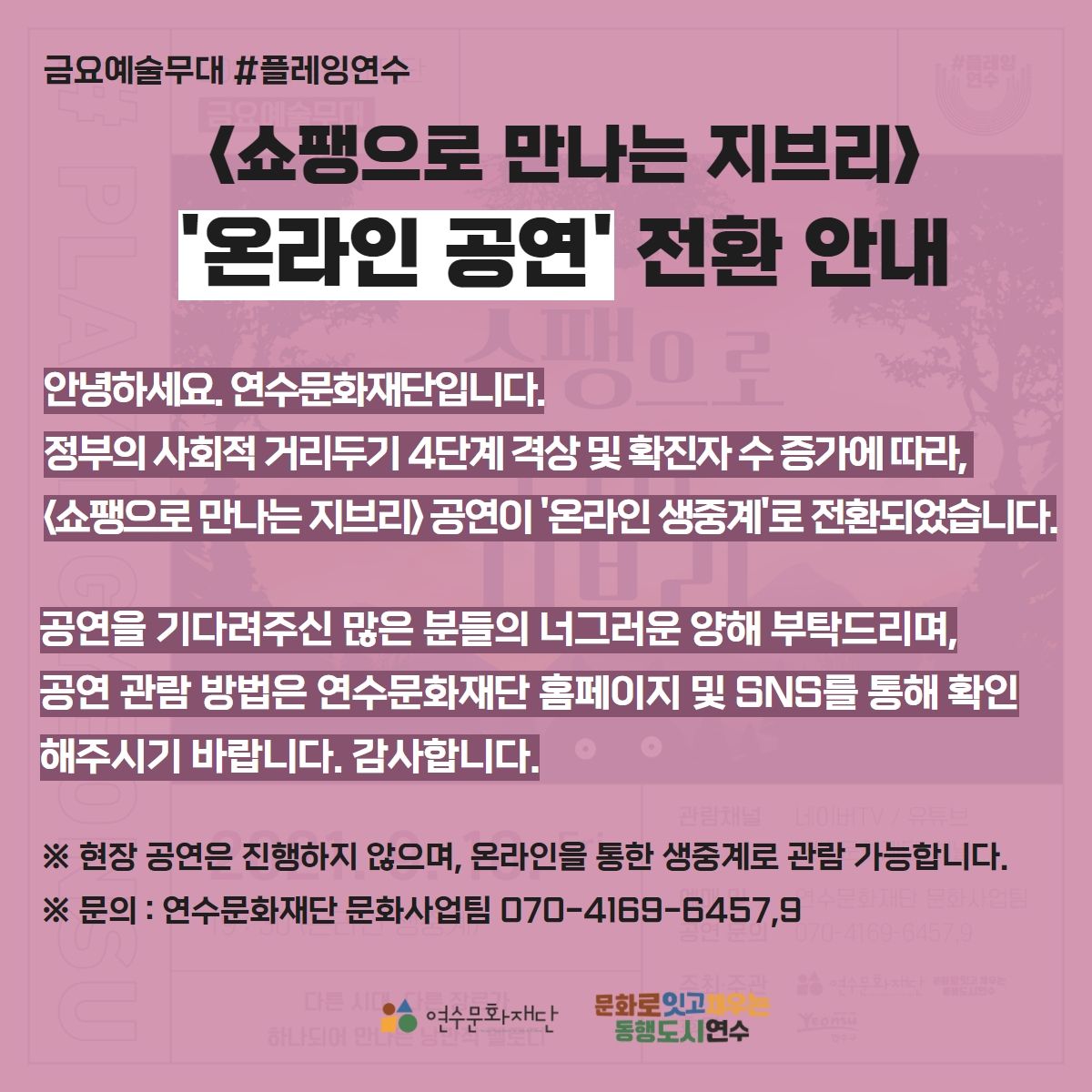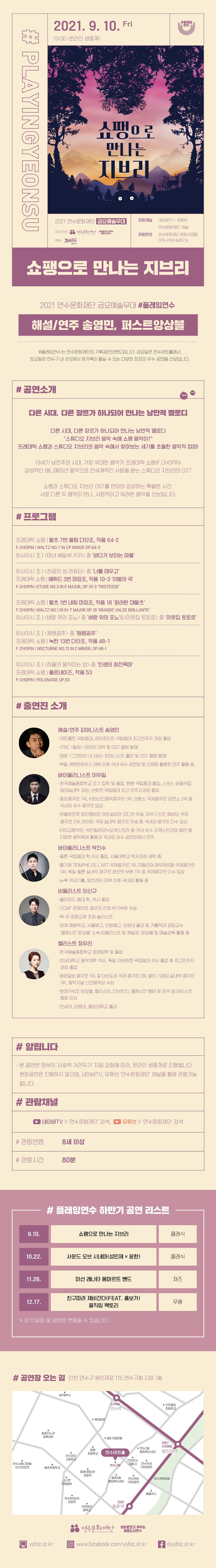 [2021 금요예술무대 #플레잉연수 '쇼팽으로 만나는 지브리' 관람 링크]