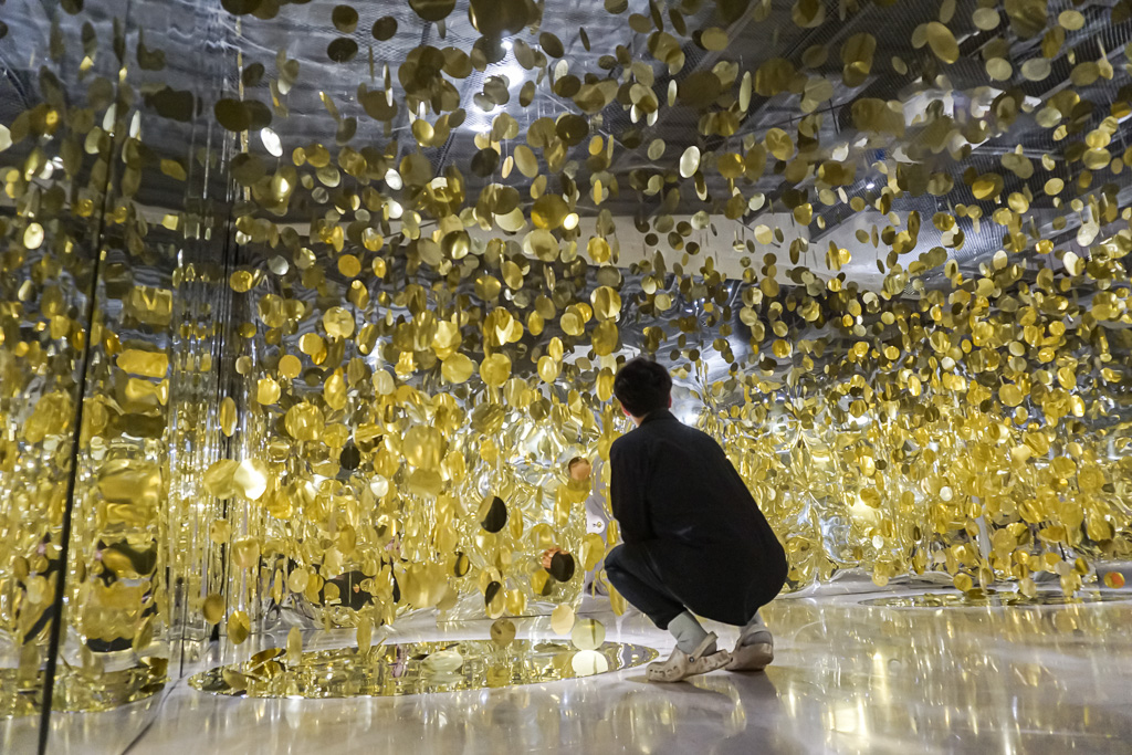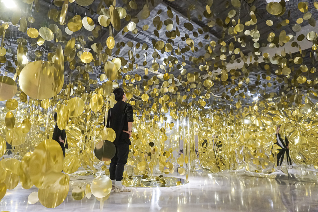 〈반짝이며 흐르는〉이라는 전시는 승기천에 반사되어 반짝이는 빛을 닮은 금빛 파편과 수변 생태계의 변화로 새롭게 생겨날 생물군들을 닮은 조각으로 표현하였다.